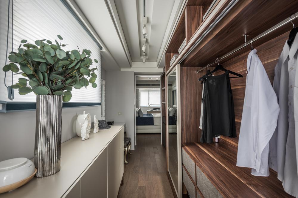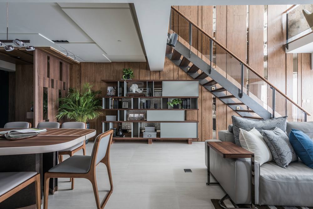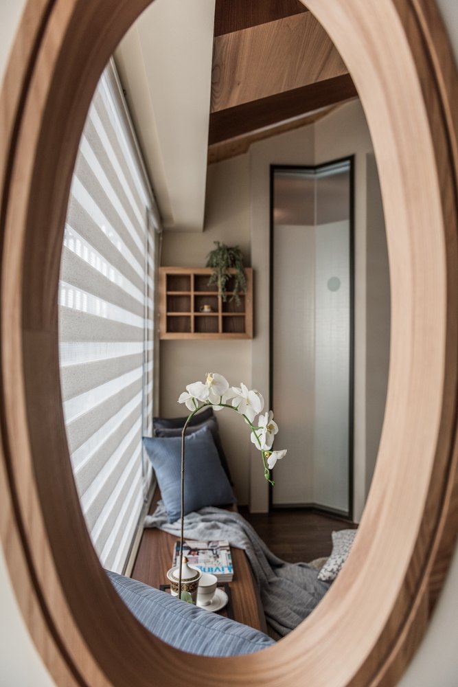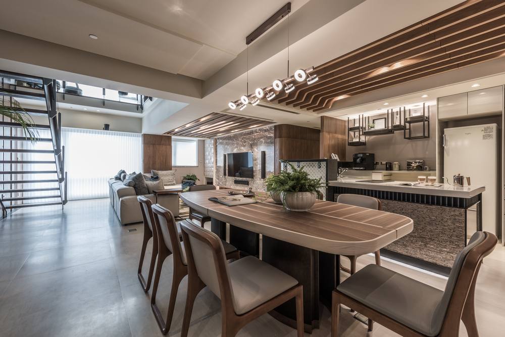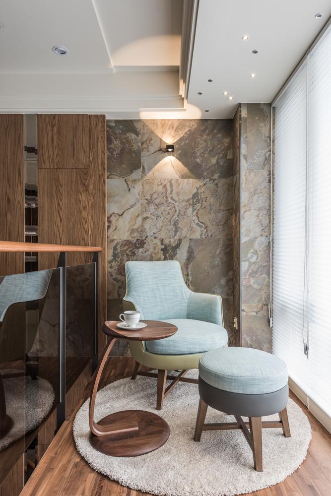 經過大半輩子的奮鬥,如今事業有成退休後回到了孰悉的故鄉,屋主購置了一間社區頂樓的樓中樓,委託我們將他夢想的退休宅規劃出來,一個會讓他想要宅在家的規劃;不合實用的舊水泥梯我們將之拆除移位並選用雷射切割鐵件組成的訂製樓梯讓這巨大又必須存在的量體具有設計感及穿透感,即使靠近陽台也能不阻擋煦煦的陽光灑入室內,公共區的吧檯與後方的廚房動線一氣呵成,客廳沙發就坐落在挑空的空間下很直白地感受到複層空間的挑高,獨立又具設計感的水槽釋放了浴廁狹小的空間,反倒成了一處端景;2樓房間退縮後的廊道添加了一處可以休憩閱讀的小天地,有別於公共空間的人文調性,寢室為了迎合其使用者各自形塑了不同的氛圍;設置有烤箱及蒸汽間的頂樓則搭配了偌大的景觀窗讓療癒身體後的屋主能遠眺大漢溪細細回味過往。