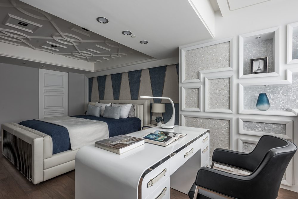 • 主要建材|水刀拼貼大理石、鐵梯雷射切割成型、貝殼板、進口壁紙、實木踢踏